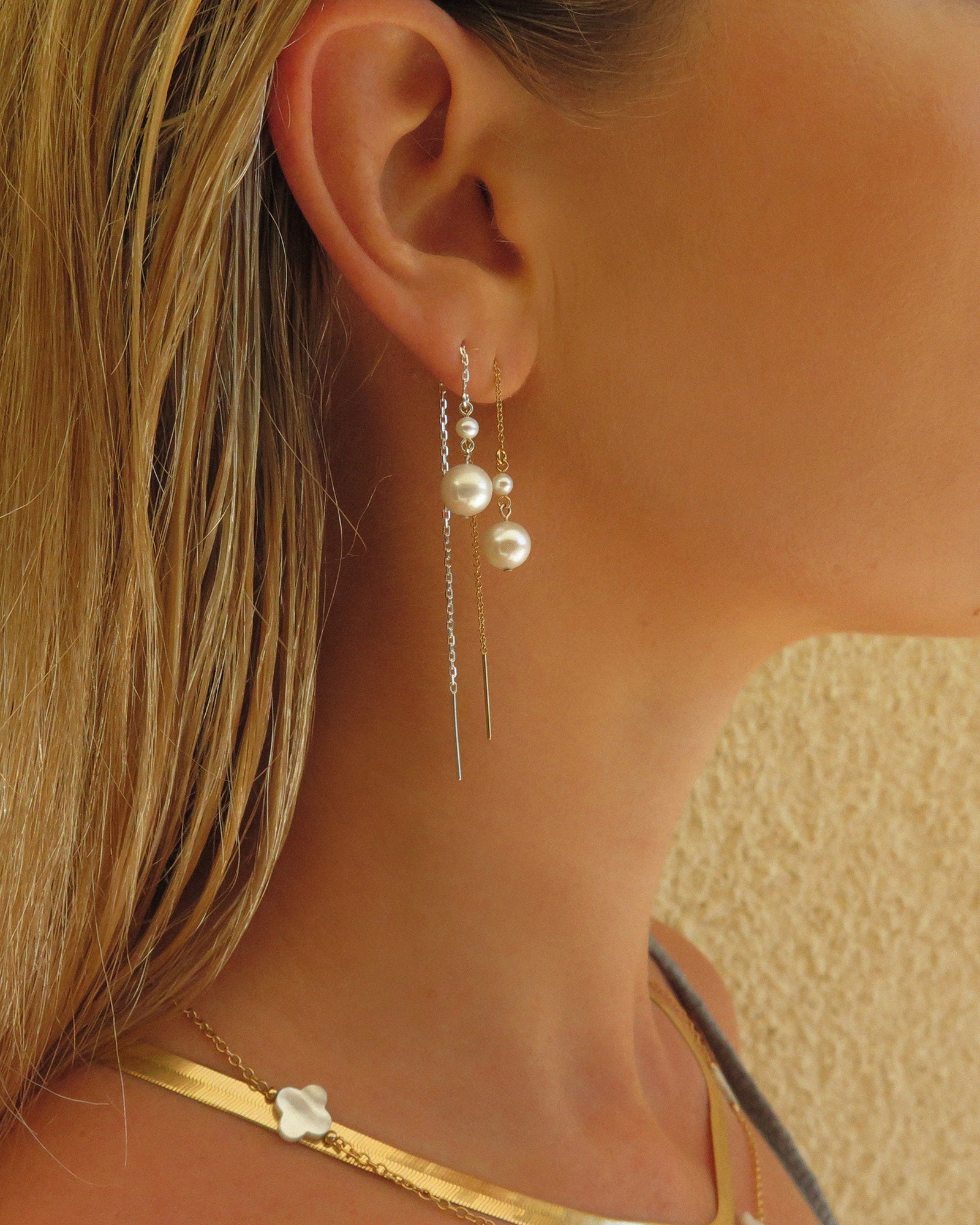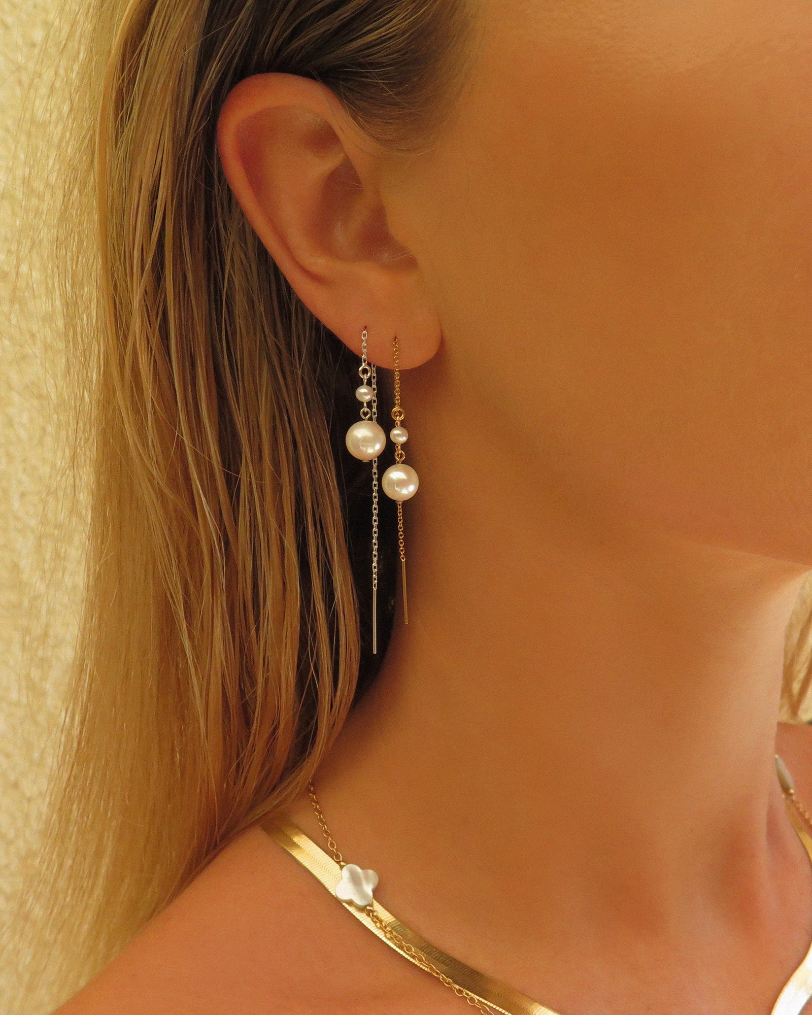 Effortlessly elegant with a touch of modern cool, these earrings are your new go-to for low-effort luxe. Featuring two luminous freshwater pearls suspended on a fine sterling silver threader chain, they’re designed to move with you – catching the light and turning heads. Lightweight, hypoallergenic, and tarnish-resistant, they’re the ultimate plus-one for a wedding, sunset cocktails, birthday dinners, or elevated everyday styling.